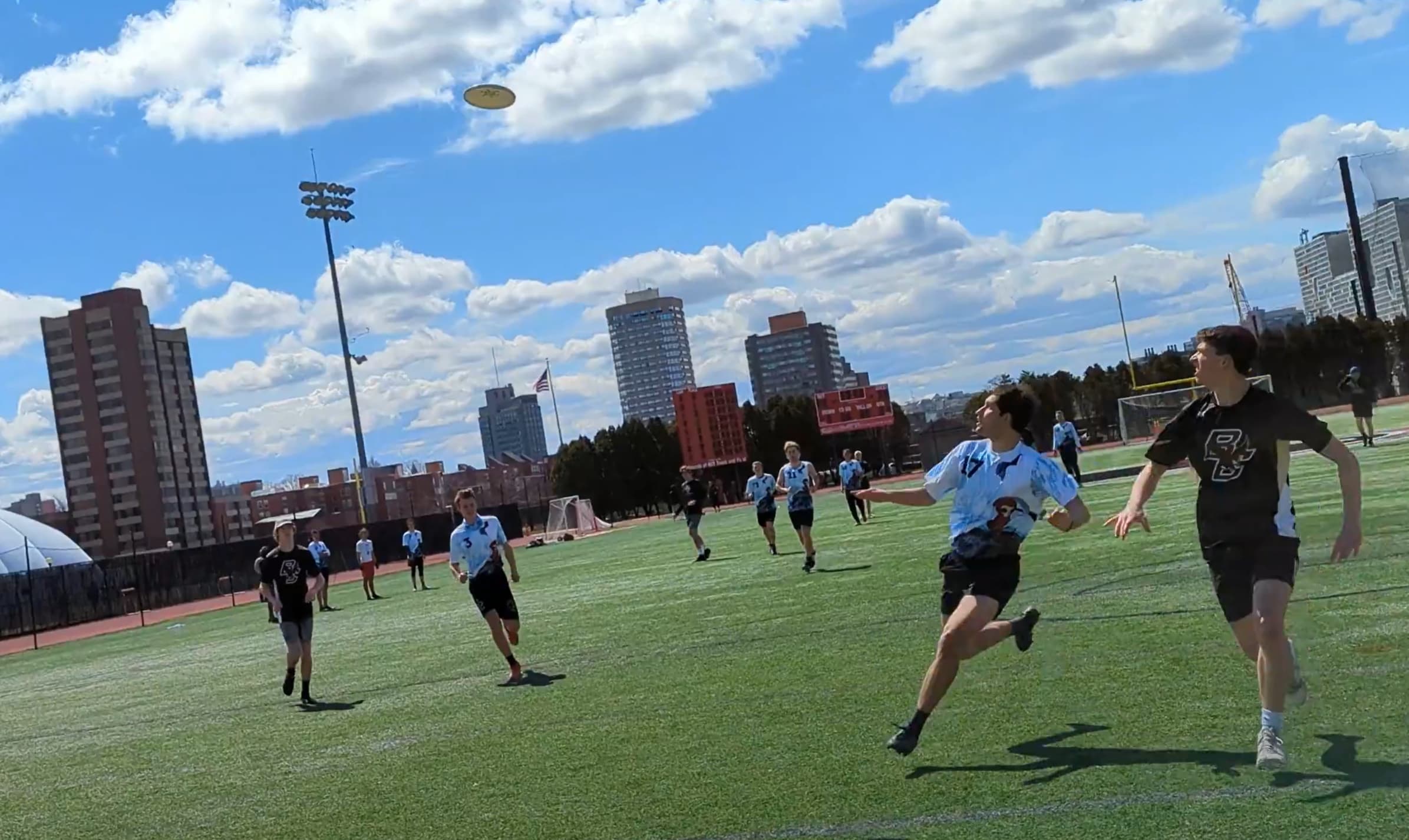 However, we converted a hard-fought 10 minute point, and then a quick 1 minute point on a Harvard dropped pull, to cut the lead to 11-9 with 6 minutes to hard cap. At this point, needing a miracle, Coach Axis Sivitz put 2 freshmen on the line, Zach Perry ‘28 and Ethan Phan ‘28, along with 5 veterans. He called out a new defensive set: our so called “BU Zone,” named for the team that played it against us three weeks ago. After watching film of that game, we’ve spent around 20 minutes per practice for the past three weeks learning the set, and it remained in our back pocket as a last resort. For the final three points, we kept the same group of 7 players, and ‘BU Zone’ stifled Harvard, with the three handler-defenders denying all dumps, and the four downfield defenders executing the zone to perfection. Offensively, all 7 contributed big plays, while remaining cool and collected, such as an audacious 35 yard cross field blade from Kyle to Ethan, and a leaping catch from Rich over two defenders. So, we scored to make it 11-10 two minutes before hard cap, and broke again to reach universe point. This was the situation we’d been dreaming about all year: 11-11, universe point, game-to-go vs. Harvard. Vincent seized the moment, making a brilliant fully horizontal layout D, before the offense punched in the goal, with Andrew Okyere ‘25 throwing a short inside flick to Kyle in the endzone, who made a layout catch for the win. Thus, Grim improves to 3-0 vs Harvard this year, and 4-1 in the past two years, with all four wins coming on frantic comebacks completed on universe points. And, our season continues, with Regionals in three weeks.