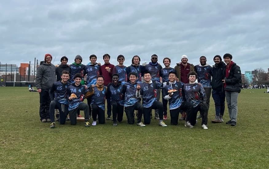 Early on, a 40 yard huck from Kyle Roke ‘26 sailed over its intended target’s head, before Emeka Echezona ‘24 flew out of nowhere, making a full layout catch in the back of the endzone. This was the game’s first break, giving us a 4-2 lead. After two more breaks for us and one more Harvard break, on many hard fought points, we extended our lead to 7-4, with 3 of these goals coming on Kyle's hucks. However, our excitement soon turned to anguish, as Harvard’s stifling zone defense forced turnover after turnover, despite many layout catches, layout blocks, and even a few completed crossfield hammers from our team. Harvard held, and then broke three times in a row, to take half 8-7. They started the second half with three more goals in a row, despite many MIT Ds, to extend their lead to 11-7, on seven straight goals. To make matters worse, a few ill-timed injuries meant that we were short numbered — Vincent Fan ’24, Jacob Daitzman ’25, Kyle, and Rich Wang ’27 would be handling every point for the rest of the game. Down 11-7, with a few minutes to soft cap, and less than 20 minutes to hard cap, and MIT not having scored in 45 minutes, it would have been easy to count us out.